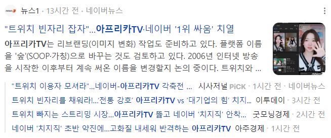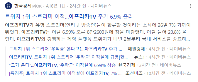 오늘 아프리카TV가 급등한 이유는 국내 트위치 1위 스트리머가 아프리카TV로 이적했다는 소식이 전해지면서였는데요.