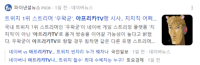 그런 이후 오늘 트위치 1위 스트리머인 '우왁굳'이 아프리카TV로 이적했다는 뉴스가 보도되면서 아프리카TV의 주가는 약 13%급등하였습니다.